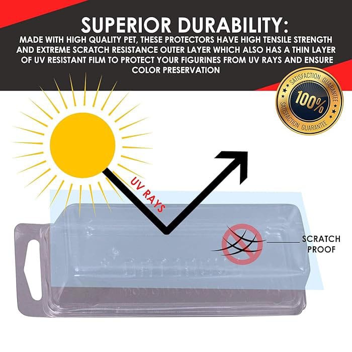 Hochwertiges 50er-Pack mit Schutzhüllen aus besonders hochwertigem PET, maßgefertigt für Actionfiguren.