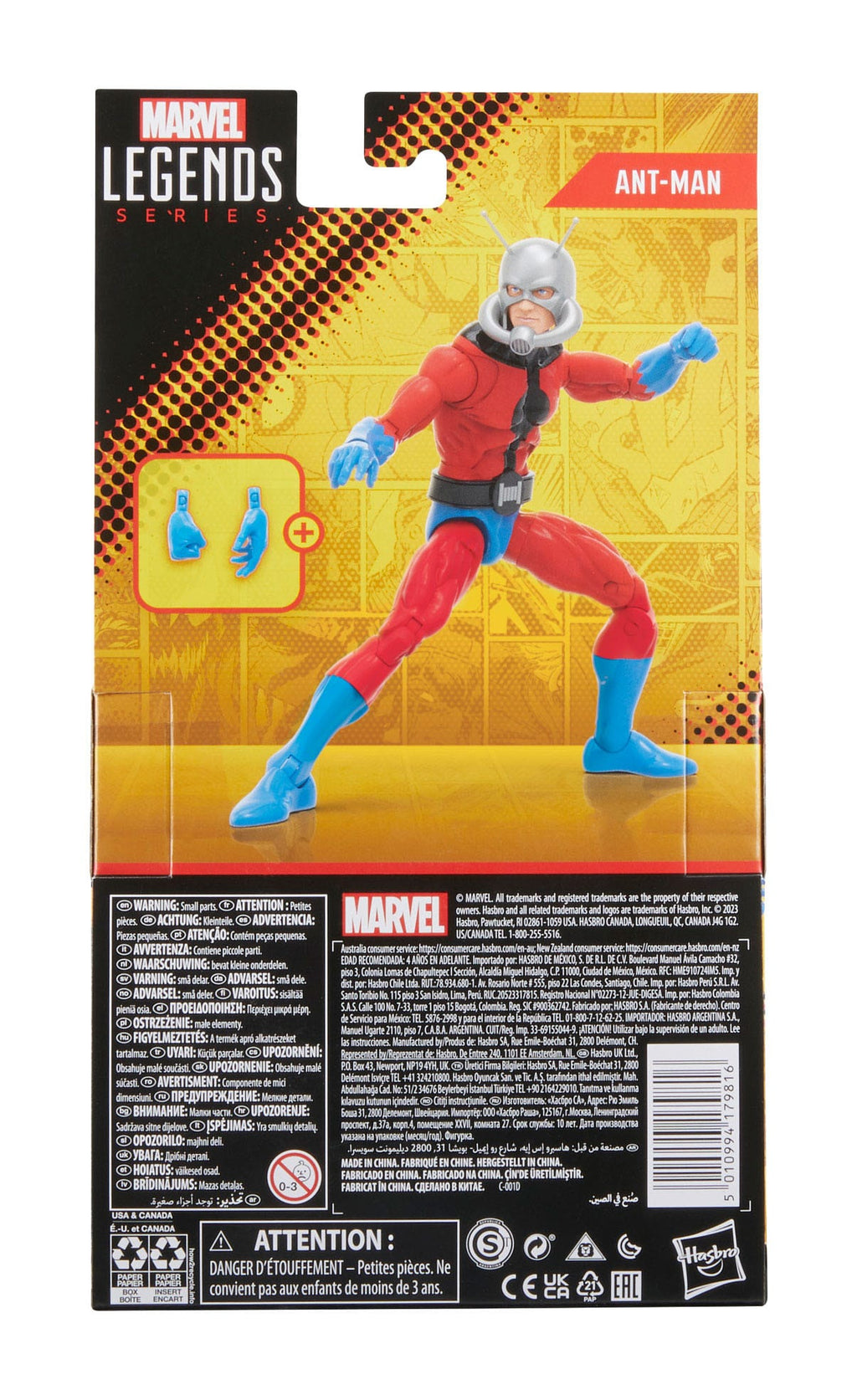 Diese 15 cm große Marvel Legends Sammelfigur ist nach der Erscheinung von Ant-Man in den Marvel Astonishing Ant-Man Comics gestaltet und kommt mit Premiumdetails und mehreren Bewegungspunkten. Die Figur kommt mit 2 austauschbaren Händen als Accessoires.