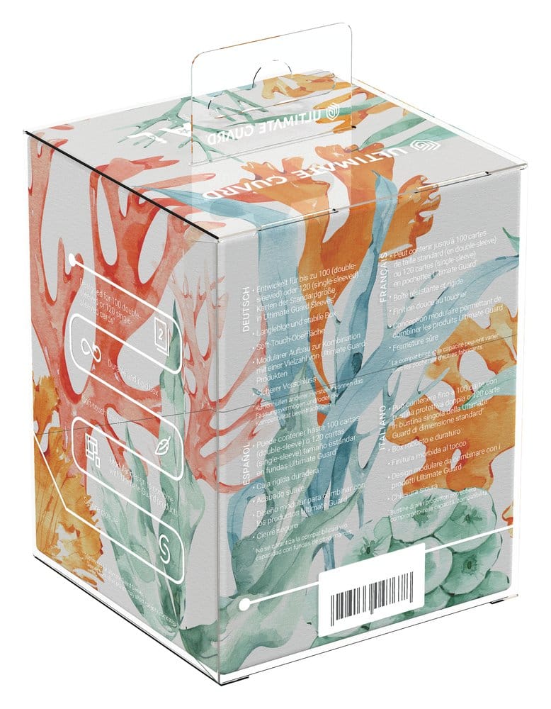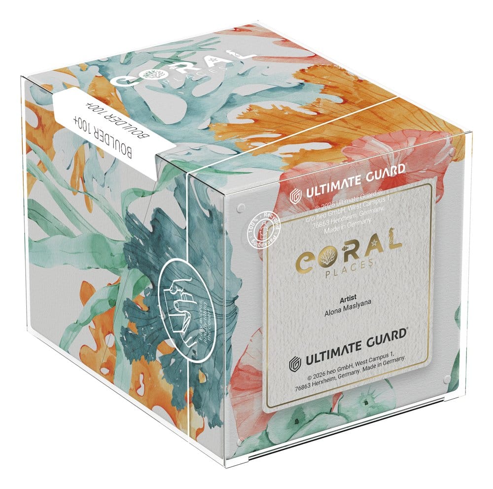Der RTE Boulder 100+ von Ultimate Guard aus der "Coral Places"-Reihe ist eine robuste und zuverlässige Deckbox, die in Deutschland aus 78% erneuerbaren Rohstoffen hergestellt wird. Trotz seines sicheren Verschlusses lässt sich der RTE Boulder 100+ einfach und bequem öffnen und bietet Platz für 100 doppelt gesleevte Karten (in Ultimate Guard-Hüllen*), was ihn zur idealen Deckbox für Sammelkartenspiele wie Magic: The Gathering, Pokémon, Lorcana, Flesh and Blood, Yu-Gi-Oh!, Riftbound oder One Piece macht. Der hochwertige Vollfarbdruck der Deckbox ist beständig und farbintensiv, die umweltfreundliche Verpackung besteht aus 100% recyceltem und weiter recycelbarem Material. Boulder sind mit allen Massenaufbewahrungsboxen von Ultimate Guard kompatibel und lassen sich besonders gut mit Arkhive-, Superhive- und Flip'n'Tray-Boxen kombinieren.