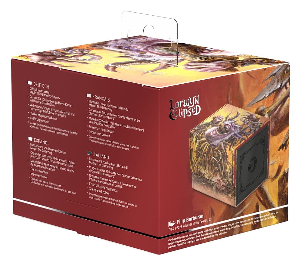 Der Sidewinder 100+ Xenoskin von Ultimate Guard ist eine Premium-Deckbox für Magic: The Gathering, die dank ihres widerstandsfähigen Xenoskin-Materials, der hochwertigen Mikrofaserinnenseite und eines starken Magnetverschlusses herausragenden Kartenschutz garantiert — und gleichzeitig einen einfachen und bequemen Zugriff auf die Karten im Inneren ermöglicht. Mit Platz für 100 doppelt gesleevte Karten (in Ultimate Guard-Hüllen*) und bedruckt mit offiziell lizenzierten Artworks aus dem Magic: The Gathering-Set "Lorwyn Eclipsed" ist der Sidewinder 100+ Xenoskin die perfekte MTG-Deckbox für alle Magic-Formate (Commander/EDH, Modern, Standard, usw.). Kombinierbar mit Omnihive-, Superhive- und Smarthive-Boxen von Ultimate Guard.